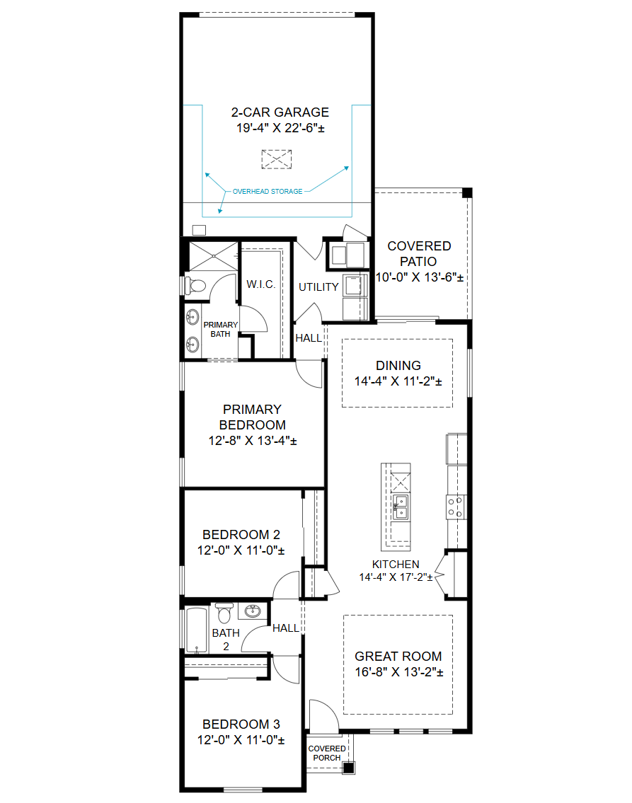 Discover "The Zinfandel," a single-story floor plan that epitomizes efficient and stylish living. This home features three spacious bedrooms and two bathrooms, each designed to maximize use of space. The layout includes a well-appointed primary suite, a large kitchen island, and an open flow between the dining room, kitchen, and great room, perfect for modern living.